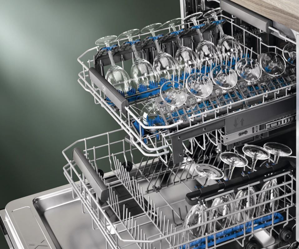 Вбудована посудомийна машина QuickSelect з технологією AirDry, шухлядою MaxiFlex, опорами GlassHolder і SoftSpikes, підлоговим дисплеєм Beam та кошиком FlexiLift. Завдяки посудомийній машині Glasscare ваш скляний посуд залишатиметься безпечним та блискучим. Ручки SoftGrips і шипи SoftSpikes м'яко утримують склянки і келихи в потрібному положенні у верхньому кошику. У нижньому кошику тримачі GlassHolders надійно зафіксують навіть найвищі склянки.