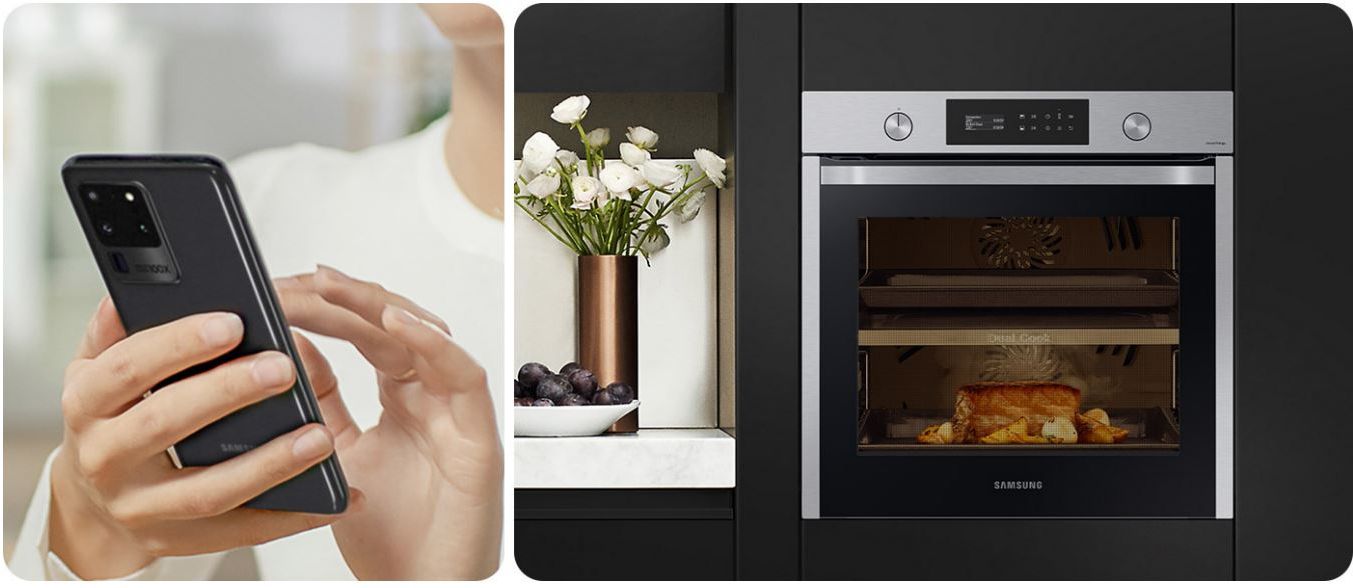 Керувати роботою духової шафи можна за допомогою смартфона. Для цього встановіть додаток SmartThings, який дозволяє вмикати та вимикати духову шафу та керувати приготуванням їжі з будь-якого місця. У додатку також доступний асистент випікання, який допоможе вам легко вибрати потрібну програму залежно від страви, яку ви готуєте.