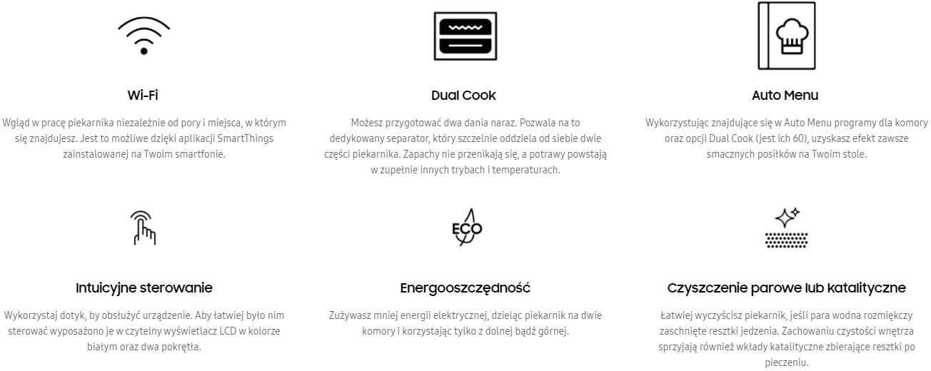 Духова шафа Samsung - це прилад, який поєднує в собі продуманий стиль і функціональність. Покриття з нержавіючої сталі підкреслює її сучасність, що робить її ідеальним варіантом для будь-якої сучасної кухні. Вона має зручну ручку, циферблати, що легко зберігаються, та РК-дисплей. Завдяки модулю Wi-Fi ви можете керувати роботою Samsung NV75A6549RS зі свого смартфона. Ви можете легко активувати духову шафу та стежити за її поточним режимом роботи.