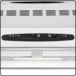 Управління роботою приладу та освітленням здійснюється за допомогою ергономічного повзункового перемикача на передній панелі. Завдяки 3 рівням потужності витяжка Bomann впорається з будь-якими видами випарів.