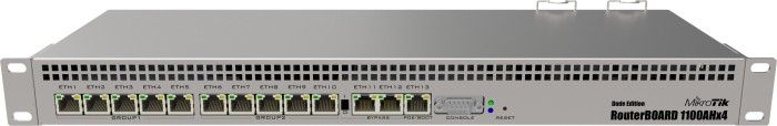 Пристрій оснащений корпусом для монтажу в стійку висотою 1U, 13 портами Gigabit Ethernet, послідовним портом RS232 і двома резервними джерелами живлення (з підтримкою телекомунікаційного живлення -48 В постійного струму і 802.3at / af).RB1100AHx4 Dude Edition включає в себе кілька високошвидкісних роз'ємів для зберігання даних (два SATA і два M.2) для використання з базою даних Dude, кешем проксі-сервера або іншими функціями, що вимагають великих обсягів пам'яті.Включає в себе вже встановлений накопичувач M.2 об'ємом 60 Гб.