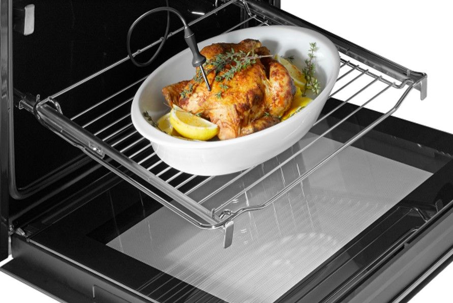 Дверцята духовки виготовлені з потрійного скла, що забезпечує високий рівень безпеки. Скло можна легко зняти, не знімаючи всі дверцята, тому ви можете швидко і легко очистити їх у будь-який час. Вентилятор охолодження дверцят забезпечує безпечну температуру поверхні духовки. Також передбачено блокування від дітей, щоб діти не змогли увімкнути духовку або скинути обрану програму. Купуючи духову шафу ETV8760ds, вам більше не доведеться турбуватися про придбання додаткових аксесуарів. Ця духова шафа поставляється повністю укомплектованою. У базовій комплектації ви знайдете тарілку і глибоке деко, решітку і вже згадані телескопічні напрямні, каталітичні пластини і спеціальний зонд для випікання.