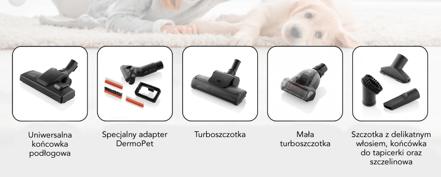 У домашніх господарствах домашні улюбленці не просто пустують на підлозі. Тому пилосос ETA Grande Animal оснащений широким асортиментом аксесуарів, які дозволяють ретельно прибирати різні поверхні та куточки.