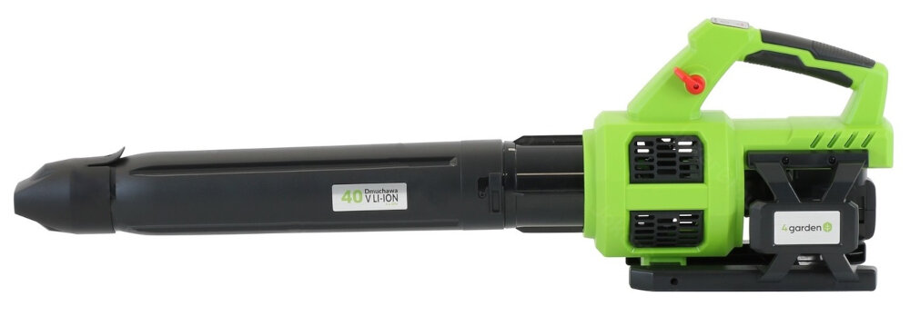 Повітродувка приводиться в дію безщітковим двигуном 2х20 В і працює від акумулятора ємністю 2,0 або 4,0 Ач. Залежно від вибору акумулятора, пристрій може працювати до 22 або до 55 хвилин, чого достатньо для прибирання невеликого присадибного саду. Акумуляторна повітродувка 4GARDEN AD22 видуває повітря зі швидкістю до 198 км/год.