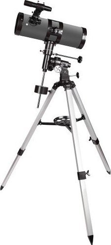 Відправка з 17 березня 2026Телескоп Levenhuk Blitz 114s PLUS з ньютонівським дзеркалом. Апертура: 114 мм. Фокусна відстань: 500 мм Телескоп Levenhuk Blitz 114s PLUS - це короткофокусний ньютонівський дзеркальний телескоп для вивчення об'єктів далекого неба, а також астрофотографії. Завдяки високій роздільній здатності він дає чіткі та детальні зображення об'єктів далекого неба і Сонячної системи. Невеликі розміри телескопа дозволяють брати його на заміські зустрічі астрономів. Дзеркальний телескоп оснащений сферичним головним дзеркалом. Лінзи виготовлені зі скла з покриттям антивідблиску. Телескоп дає чітке і деталізоване зображення з невеликими спотвореннями аж до максимального збільшення. Телескоп обладнано паралактичною монтировкою з ручним керуванням. Монтировка кріпиться до алюмінієвого штатива. На штативі можна розмістити поличку для інструментів. Ніжки штатива регулюються по висоті, що дозволяє легко налаштувати телескоп для користувачів різного зросту. Особливості: Ньютонівський дзеркальний телескоп з короткою фокусною відстанню Підходить для професійної астрофотографії Чудовий вибір для космічних спостережень, особливо об'єктів глибокого неба Паралактична монтировка для точного і плавного відстеження Оптичні аксесуари в комплекті Склад комплекту: Телескопічна труба K 10 мм Окуляр K 25 мм Телескоп 6x30 фокусувальний приціл Паралактична монтировка Ручки мікропереміщення Стрижень противаги Кільце противаги Алюмінієвий штатив з поличкою для інструментів Інструкція з експлуатації та гарантійний талон Технічні характеристики: Оптична конструкція: дзеркальний телескоп Тип: ньютонівська система Матеріал оптичної системи: оптичне скло Покриття оптичної системи: антивідблискова Апертура, мм: 114 Форма об'єктива (дзеркало): сферична Фокусна відстань, мм: 500 Максимальне збільшення, х: 228 Число діафрагми: f/4.4 Поріг роздільної здатності в кутових секундах: 4.4 Межа зоряної величини: 12,38 Окуляри: K 10 мм (50x), K 25 мм (20x) Діаметр окулярів: 1.25 Видошукач: 6x30, оптичний Фокусувальна труба: з зубчастою планкою Штатив: алюмінієвий Висота штатива (регульована), мм: 610-1040 Лоток для аксесуарів: так Управління зоровою трубою: ручне Монтування: паралактичне EQ3 Спосіб кріплення тубуса: кільця Матеріал тубуса: метал Застосування: виріб загального призначення. Підходить для дітей старше 3 років. Рівень підготовки: для початківців Об'єкти для спостереження: об'єкти далекого неба
