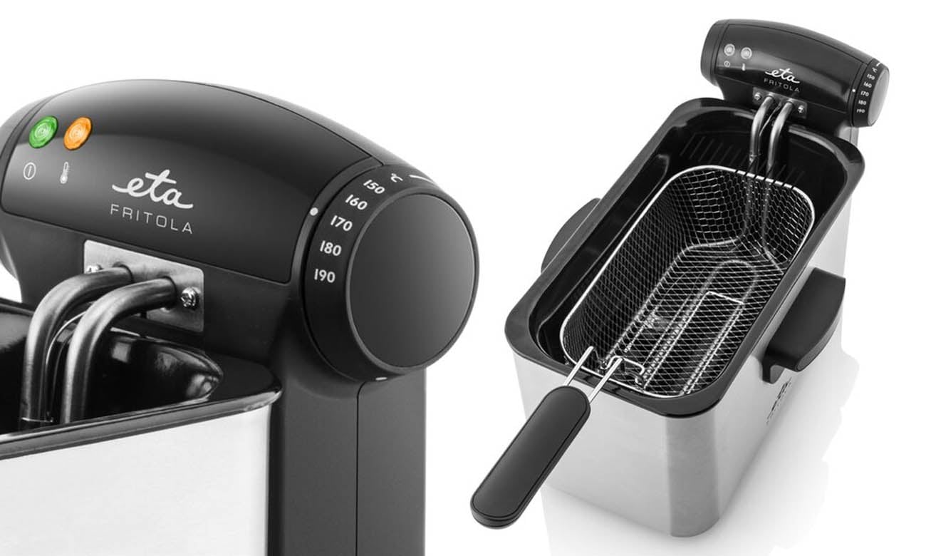 Фритюрниця ETA Fritola має потужність 2000 Вт, тому олія нагріється за лічені миті. Ручка управління дозволить вам плавно регулювати температуру в діапазоні 150-190 °C. Світловий індикатор сигналізуватиме про те, що олія досягла заданої температури, а також інформуватиме про стан приладу.