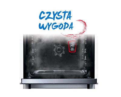 Очищення духової шафи можна полегшити за допомогою пари. Ця модель духової шафи має функцію очищення парою, яка осідає всередині приладу і розм'якшує будь-які забруднення. Після завершення програми очищення бруд можна видалити за допомогою губки або м'якої тканини. Це надзвичайно просто і швидко, і зазвичай можна обійтися без використання миючих засобів.