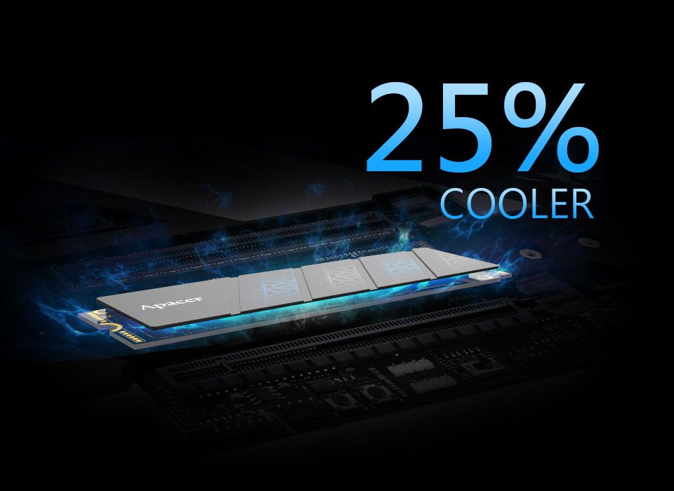 AS2280P4U Pro оснащений вбудованим радіатором, виготовленим з цільного листа алюмінію, який використовує переваги високої теплопровідності та термостійкості для зниження температури на 25%. Це допомагає зменшити знос твердотільного накопичувача, зберігаючи при цьому високу продуктивність.