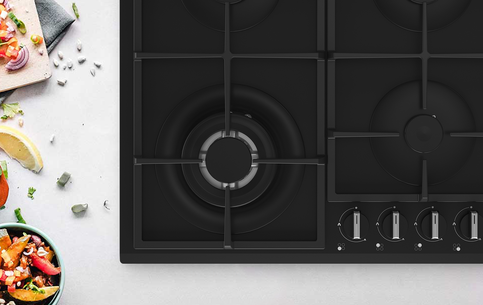 Завдяки новому дизайну варильної поверхні ми змогли збільшити відстань між конфорками, що дозволяє розміщувати на варильній поверхні більший посуд, а з меншим посудом можна поводитися більш вільно. Нові газові варильні поверхні з функцією Extra Space - це більше простору для комфортного приготування їжі. Завдяки новому дизайну варильної поверхні ми змогли збільшити відстань між конфорками, що дозволяє розміщувати на варильній поверхні більший посуд, а з меншим посудом можна поводитися більш вільно. Варильна поверхня Extra Space дозволяє максимально ефективно використовувати простір, якого завжди бракує на кухні!
