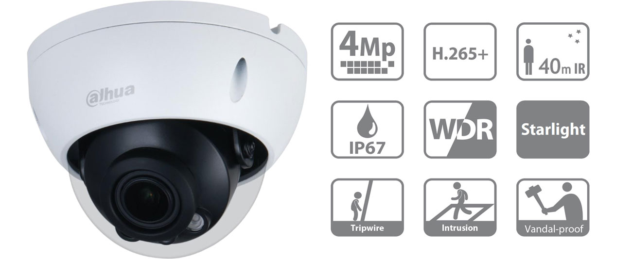 Вулична IP-камера Dahua IPC-HDBW2431R-ZS-27135-S2 з купольним корпусом - це універсальний і технологічно просунутий пристрій, який здатний побудувати систему відеоспостереження для багатьох професійних завдань. Компактний, естетично привабливий корпус дозволяє здійснювати непомітний моніторинг, який підходить для широкого спектру місць і застосувань. Таким чином, Dahua IPC-HDBW2431R-ZS-27135-S2 ідеально підходить для громадських місць, включаючи автостоянки, магазини, готелі, аеропорти, офіси або установи.