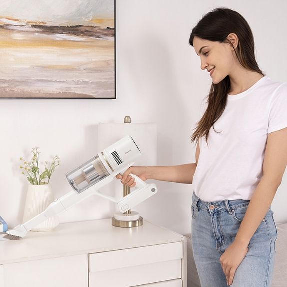 Відчуйте, наскільки комфортним може бути прибирання пилососом. Акумуляторний вертикальний пилосос Dreame P10 Pro вирізняється тривалим часом роботи, тиском всмоктування 22 000 Па, потужністю всмоктування 130 Вт і легким, зручним дизайном. Він оснащений фірмовим безщітковим двигуном Space Air 2.0 з частотою обертання 120 000 об/хв, а насадки, що входять до комплекту, дозволяють пилососити найрізноманітніші поверхні. Контейнер для пилу вміщує до 0,5 л відходів і спорожняється одним натисканням кнопки.