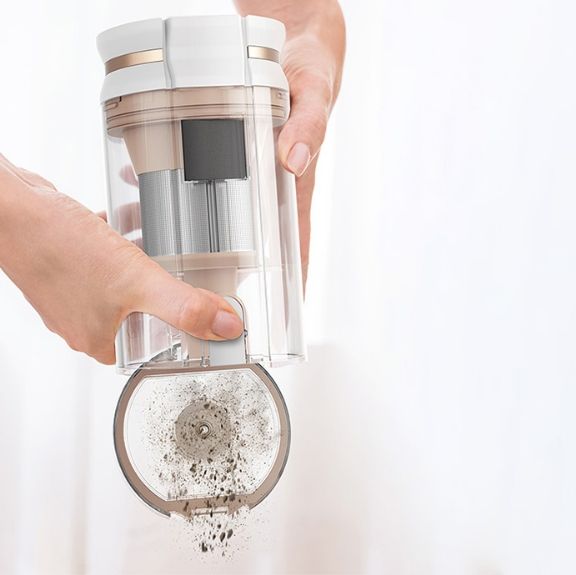 Dream P10 Pro оснащений світлодіодним екраном, тому ви можете легко перевірити рівень заряду акумулятора, змінити режим всмоктування або заблокувати кнопку активації і почати безперервне прибирання. Контейнер для пилу має ємність 0,5 літра, і вам потрібна лише одна кнопка, щоб спорожнити його. Простота обслуговування також є плюсом - роликову щітку, контейнер для пилу та фільтр можна мити під водою і використовувати повторно.