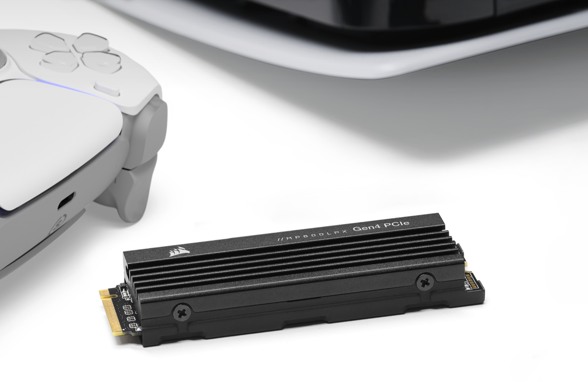 Високопродуктивний твердотільний накопичувач CORSAIR MP600 PRO LPX PCIe Gen4 x4 NVMe 1.4 M.2 оптимізований для консолі PS5 і може збільшити її ємність до 4 ТБ. Завдяки компактному формату M.2 2280 накопичувач MP600 PRO LPX легко поміщається безпосередньо в консоль і перевершує всі вимоги PS5 до продуктивності накопичувачів M.2, тому дозволяє швидко і легко розширити пам'ять консолі.