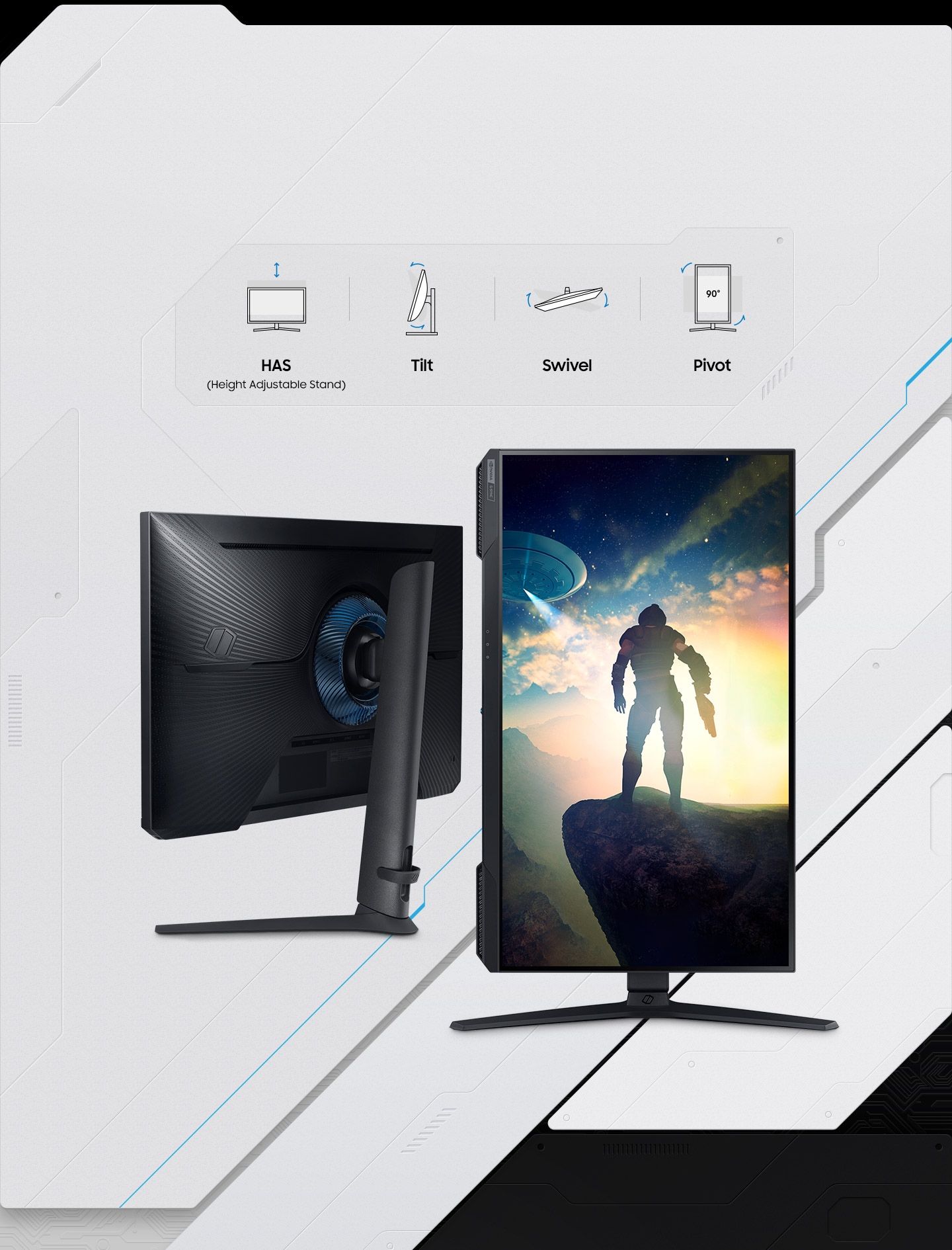 Ергономічність забезпечується можливістю налаштувати монітор так, щоб він оптимально вписувався у ваш простір. Відрегулюйте висоту і кут нахилу або поверніть екран по вертикалі за потреби. Ви можете розмістити монітор на столі або повісити його на стіну за допомогою стандартного кріплення VESA.