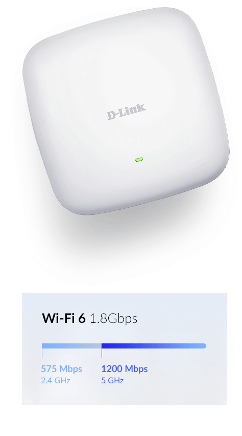 DAP-X2810 з підтримкою Wi-Fi 6 забезпечує підприємствам будь-якого розміру швидке з'єднання, значно збільшену пропускну здатність і покриття без перешкод, а також централізоване керування за допомогою Nuclias Connect.