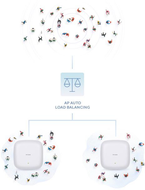 Крім того, технології балансування навантаження і Airtime Fairness керують навантаженням точок доступу для оптимізації використання ресурсів. Це гарантує, що кожен пристрій, підключений до мережі, працює з максимальною продуктивністю, не перевантажуючи всю мережу.