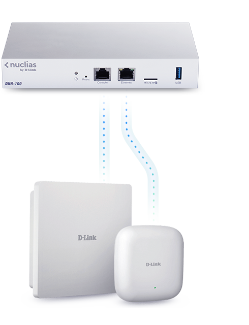 Бездротовий контролер DNH-100 - це доступне, готове рішення, яке усуває необхідність встановлення та подальшого моніторингу Nuclias Connect на додатковому обладнанні, такому як сервер або ПК. Він підтримує до 100 точок доступу, автоматично виявляє нові пристрої, завантажує конфігурації і забезпечує надійне управління обладнанням. Це просто рішення plug&play.