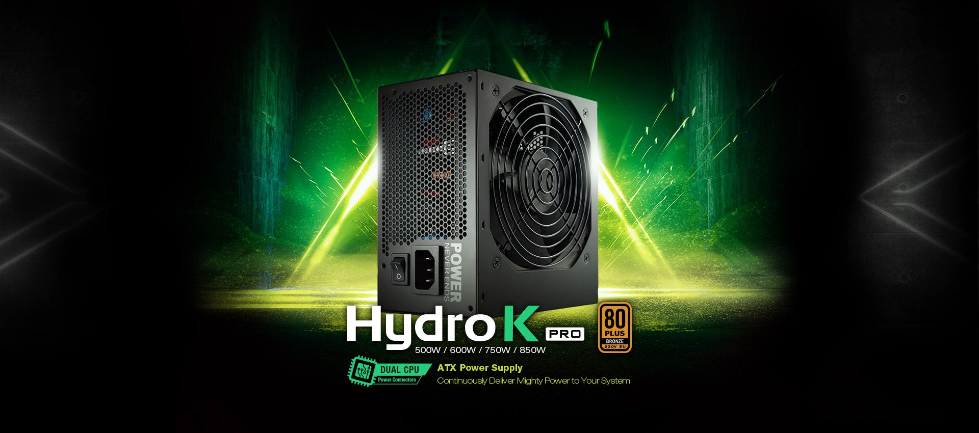 Нові блоки живлення HYDRO K PRO повністю відповідають стандарту ATX12 v2.52 і новітньому стандарту безпеки 62368, а також оснащені високоякісними стрічковими кабелями, які надають вашому ПК полірований вигляд. Серія HYDRO K PRO розроблена як потужна єдина шина +12 В, яка стабільно забезпечує максимальну продуктивність для найвимогливіших відеокарт, а спеціальна конструкція DC-DC від FSP гарантує безпеку та енергоефективність.