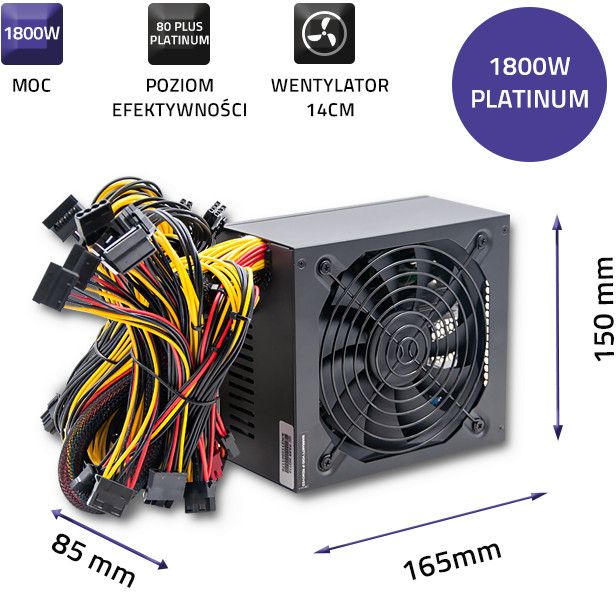 • потужність 1800 Вт, що дозволяє використовувати блок живлення для майнінгу криптовалют або високопродуктивних комп'ютерних систем,