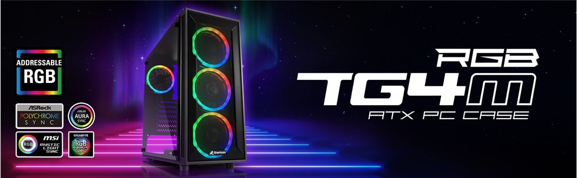 Чорна сітчаста передня панель і бічна панель із загартованого скла надають TG4M RGB стильного ігрового вигляду. Водночас можна милуватися апаратним забезпеченням, яке розміщене в скляній вітрині. Світлодіодні вентилятори також забезпечують атмосферне освітлення встановлених компонентів.