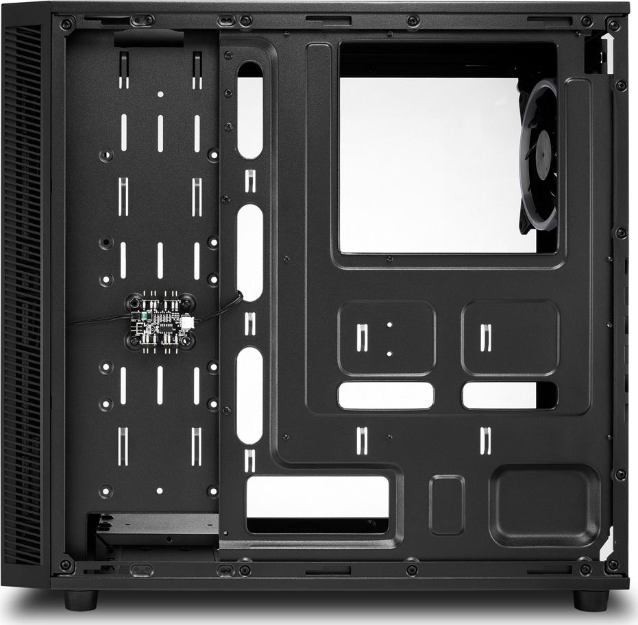 Повітропроникна сітчаста передня панель забезпечує постійну вентиляцію всього корпусу. Три 120-мм світлодіодні RGB-вентилятори на передній панелі та один на задній панелі забезпечують належне охолодження.