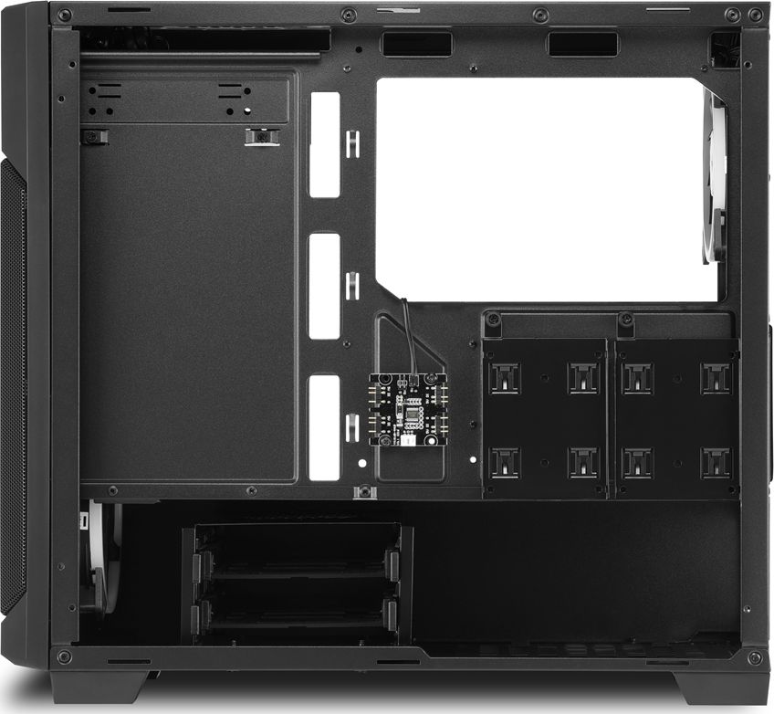 У V1000 RGB вистачить місця не лише для кількох накопичувачів: хоча корпус дуже компактний, спереду можна розмістити кулер або встановити відеокарту з максимальною довжиною 40 см. Процесорний кулер з максимальною висотою близько 15,8 см також можна розмістити в цьому корпусі формату micro-ATX.