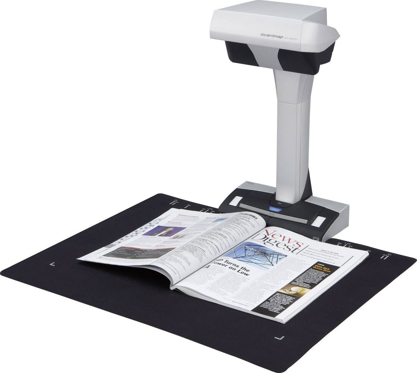 Безконтактний сканер ScanSnap SV600 дозволяє поглянути на сканування документів в абсолютно новому світлі. Він дозволяє легко сканувати газети, журнали, документи та книги, не обрізаючи та не пошкоджуючи сторінки.