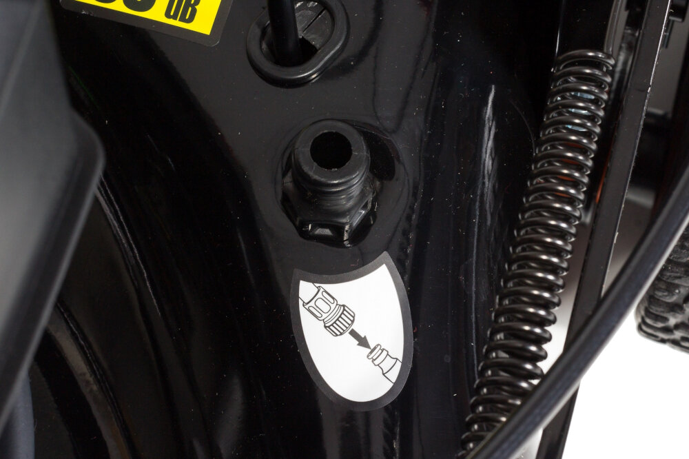 З іншого боку, великі колеса ефективно зменшують опір коченню. Завдяки колесам розміром 18 см спереду і 25 см ззаду, машина добре справляється навіть з нерівними газонами, забезпечуючи точне косіння.