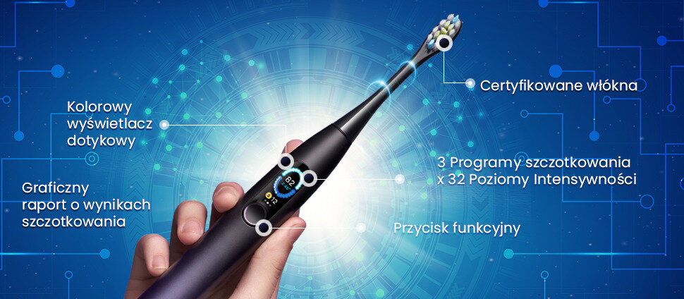 Інноваційна звукова зубна щітка з сенсорним екраном і додатком, що піклується про вашу сяючу посмішку та підтримує правильне чищення зубів.