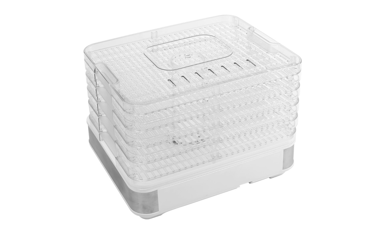 Сушарка для продуктів SFD51 від PRIME3 складається з п'яти прозорих сит. Висота сит становить 3 см, а розмір - 32х25 см, що дає загальну площу сушіння 3250 см2 і дозволяє одночасно висушити велику кількість грибів, зібраних у лісі, або ваших улюблених овочів і фруктів. Висока потужність 420 Вт забезпечує високу температуру, необхідну для сушіння великих або вологих шматочків фруктів, наприклад, скибочок яблук. Примусовий потік повітря покращує циркуляцію і дозволяє продуктам сушитися більш рівномірно.