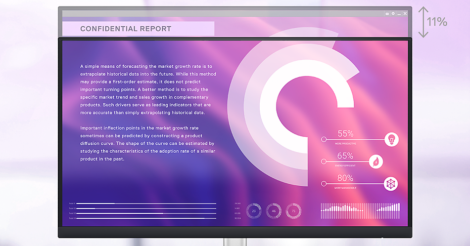 Оптимальний комфорт перегляду: 24-дюймовий дисплей з роздільною здатністю 1920 X 1200 (WUXGA) і співвідношенням сторін 16:10 забезпечує на 11% більше можливостей для перегляду.