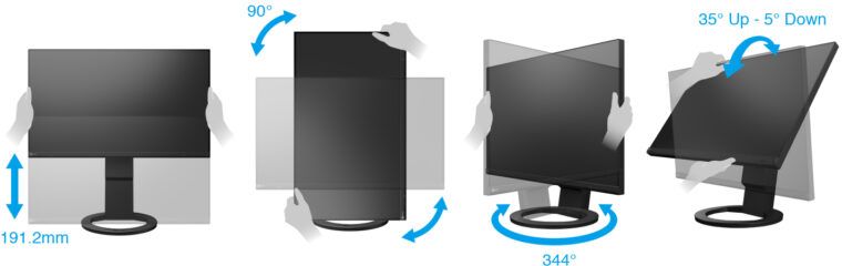 Ніжка FlexStand забезпечує зручне регулювання висоти, нахилу та повороту екрана. Це дає змогу встановити монітор у зручному положенні як для роботи сидячи, так і для роботи стоячи.