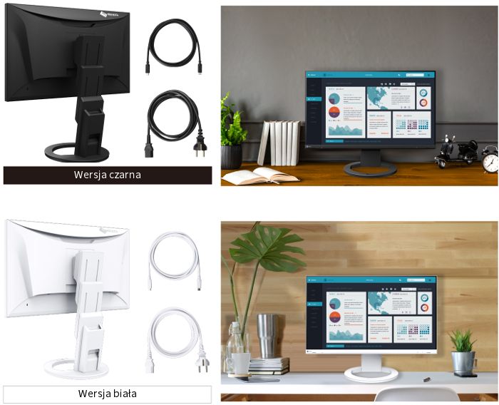 На додаток до стандартного чорного корпусу, доступна також біла версія, яка ідеально вписується в робочий простір сучасних офісів, вносячи нотку свіжості та легкості. Кабелі постачаються в кольорі, що відповідає кольору корпусу.