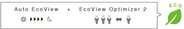 - Auto EcoView: автоматично регулює рівень яскравості екрану відповідно до змін навколишнього освітлення.