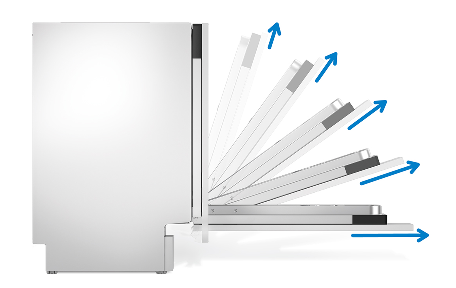Після завершення циклу миття дверцята посудомийної машини автоматично відчиняються, завдяки чому посуд всередині висихає набагато швидше - без вашого втручання. Завдяки такому рішенню посудомийна машина також споживає менше електроенергії, досягаючи високого класу енергоспоживання. Петлі SlidingFit дозволять вам легко встановити фронтальну частину посудомийної машини без різання плінтуса, тож ваша кухня не буде затьмарена непривабливими щілинами та неспівпадаючими краями. Посудомийна машина Beko з петлями SlidingFit впишеться в будь-який тип кухонних меблів.