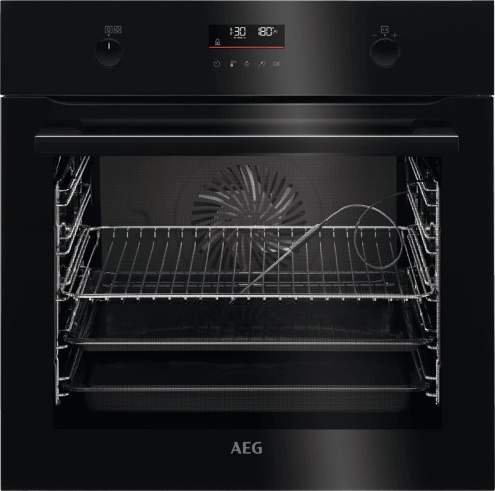 Вбудована духова шафа AEG 6000 STEAMBAKE BCE556360B об'ємом 71 л допоможе вам вивести приготування їжі на новий рівень, функція SteamBake поєднує в собі традиційні варіанти нагріву духової шафи з функцією приготування на пару, щоразу насолоджуйтеся м'ясними стравами з дивовижною соковитістю, овочі будуть хрусткими, а тістечка пишними. Багаторівневе приготування забезпечує рівномірний результат на всіх рівнях. Термощуп Food Sensor точно вимірює температуру всередині страви і вказує, коли досягнуто потрібного ступеня пропікання. Очищення духової шафи ніколи не було таким простим, як зараз, а функція піролітичного очищення перетворює жир і залишки їжі на пил, який можна легко витерти вологою ганчіркою. Клас енергоспоживання A+