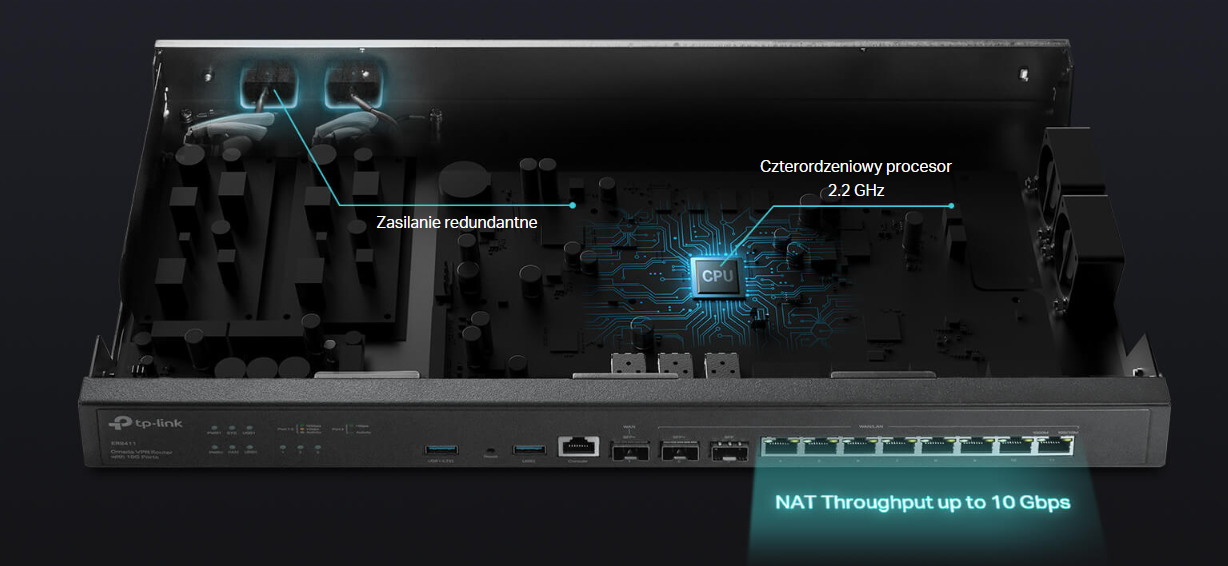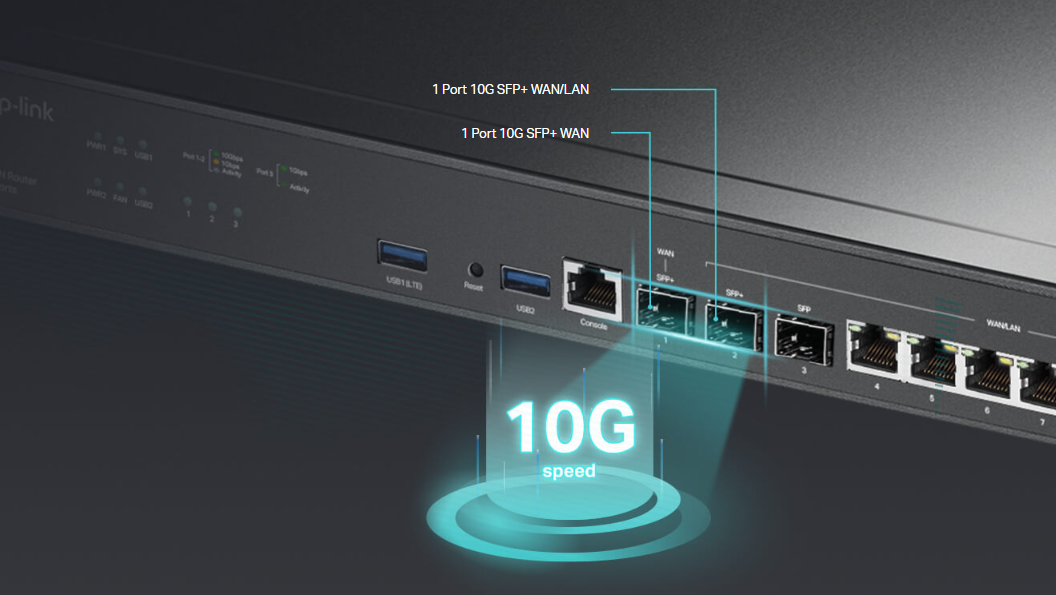 - Два порти 10GE SFP+ : 1 × WAN і 1 × WAN / LAN 10GE SFP + забезпечують агрегацію з'єднань з високою пропускною здатністю.