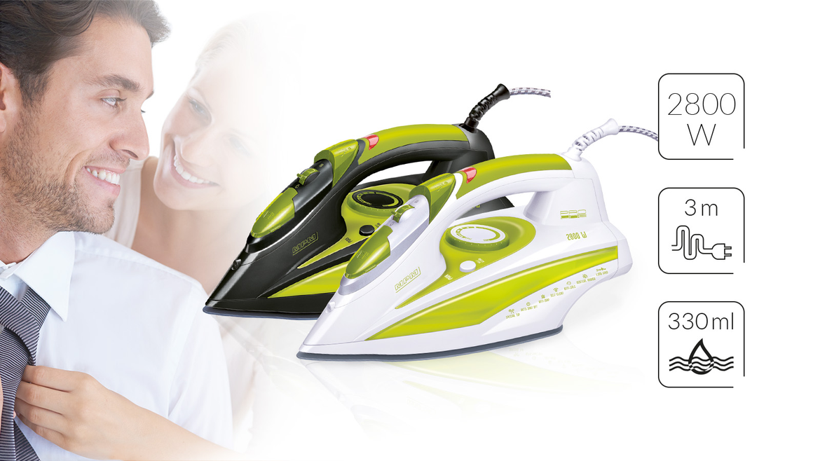 Парова праска з керамічною підошвою MZE-04 пропонує цілий ряд можливостей, щоб насолоджуватися ідеальною гладкістю вашого улюбленого одягу. Функція STRAIGHT забезпечує комфорт і безпеку. Вона гарантує, що прилад вимкнеться, якщо залишити його без роботи всього на кілька хвилин. Модель доступна у двох колірних варіантах.