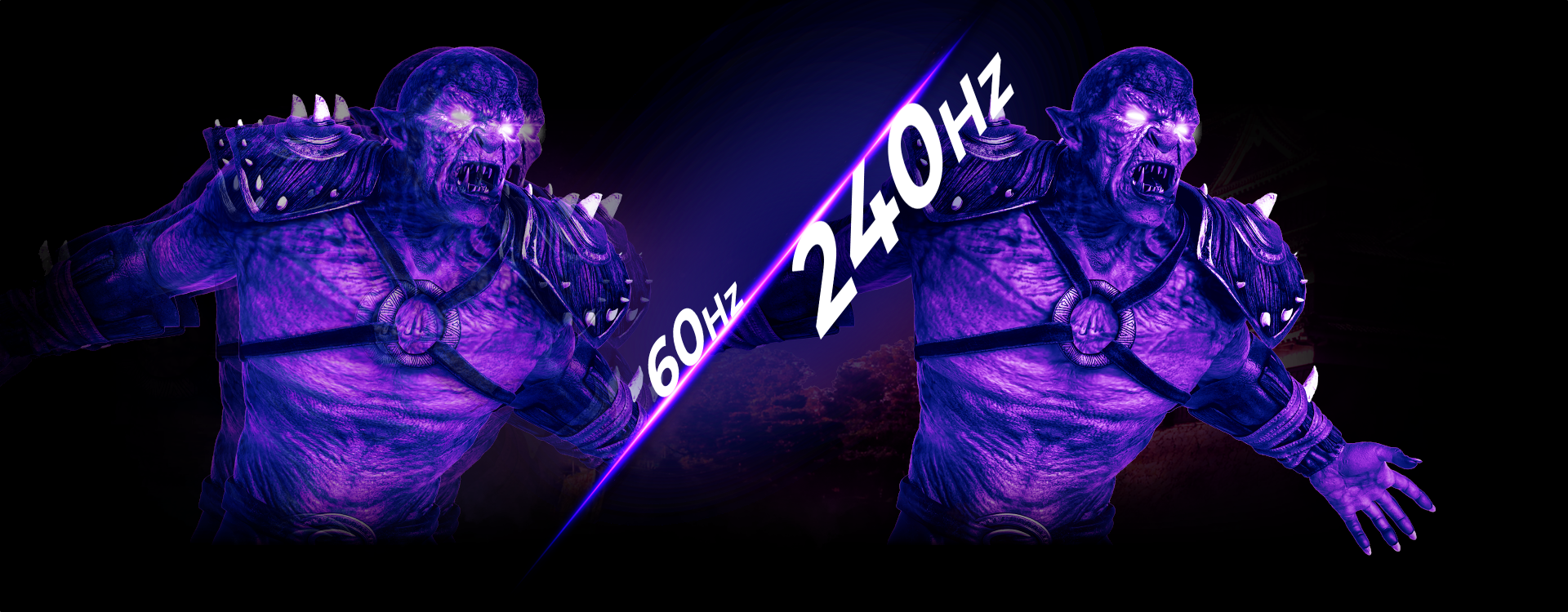 240 Гц повністю розкриває потужність найкращих відеокарт, гарантуючи безпрецедентну плавність зображення на екрані. Завдяки чіткому відображенню кожної деталі та кожному руху ваша реакція зливається з дією та виводить ігровий процес на новий рівень.