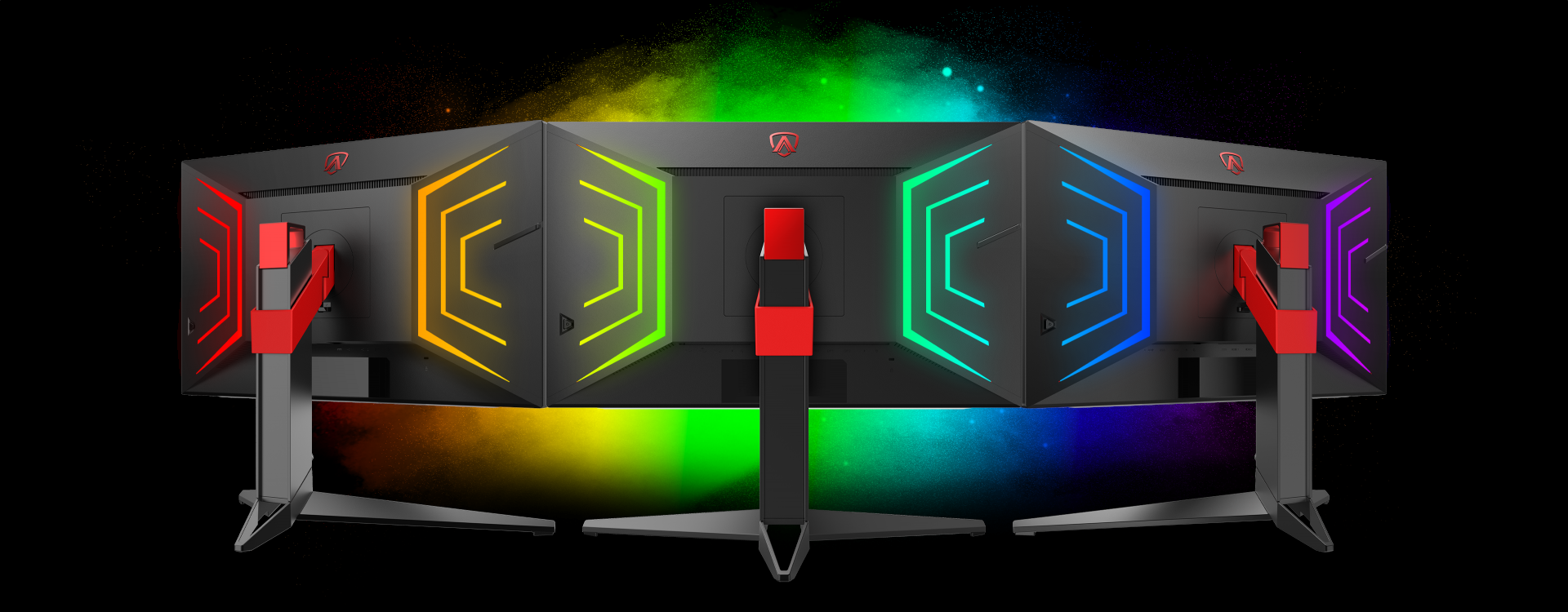 Максимальне занурення: монітори AOC оснащені спеціальним підсвічуванням на задній панелі, яке підсвічує ігровий набір різними кольорами. Обирайте будь-який колір, поєднуйте його з іншими пристроями AOC та тестуйте різні варіанти підсвічування.