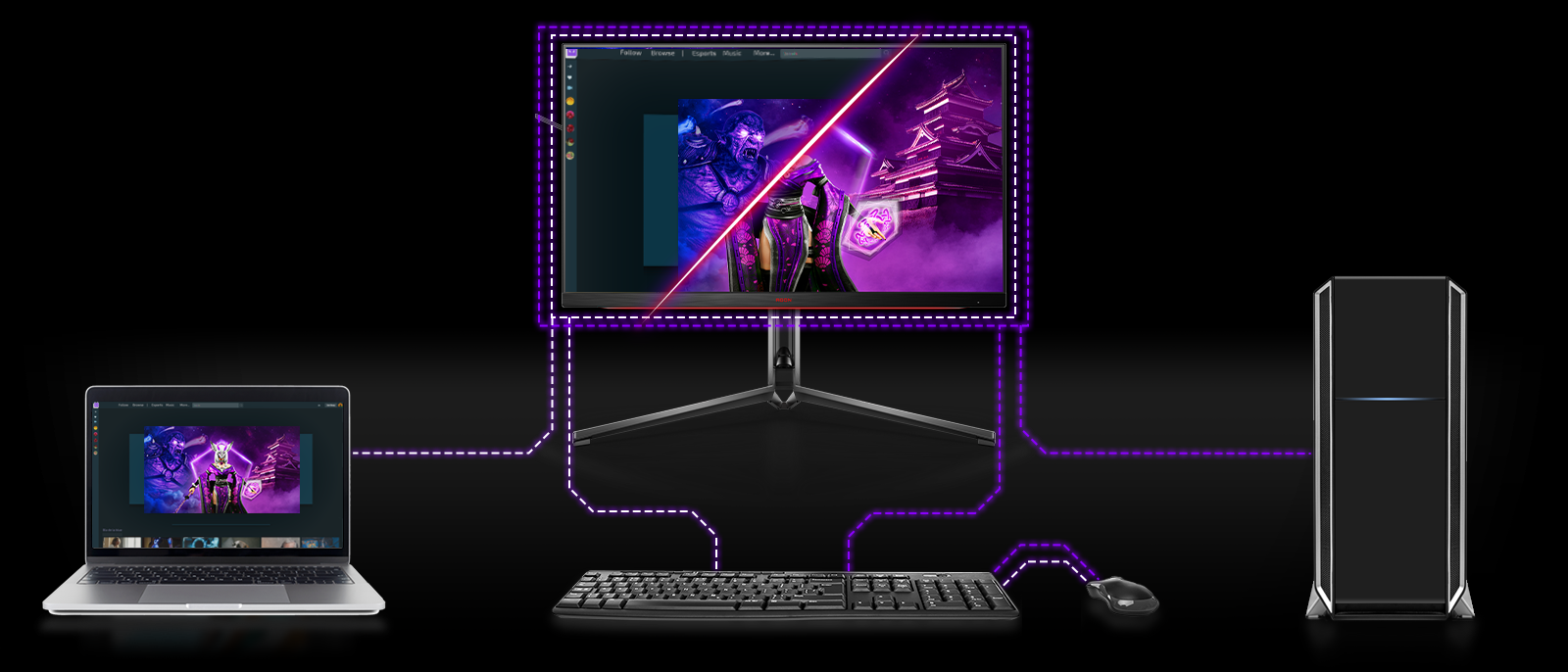 Розширте поле зору, використовуючи кілька моніторів одночасно. Тонкі краї та безрамковий дизайн гарантують, що відволікання від кадрів зведено до мінімуму, і дозволяють створити ідеальну бойову позицію.