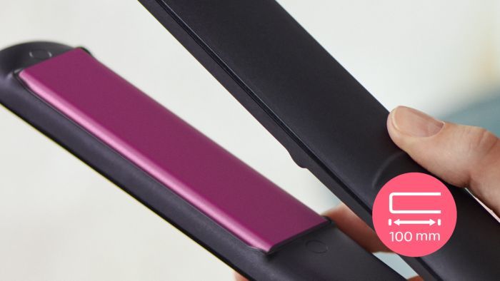 Подовжені 100-міліметрові пластини забезпечують кращий контакт з волоссям і дозволяють досягти чудових результатів випрямлення за менший час.