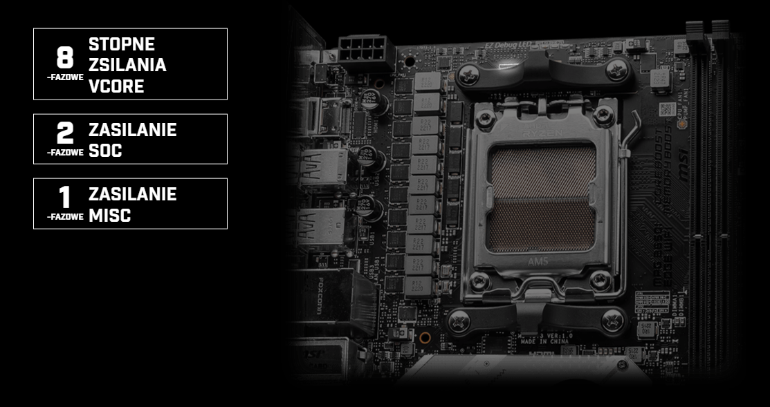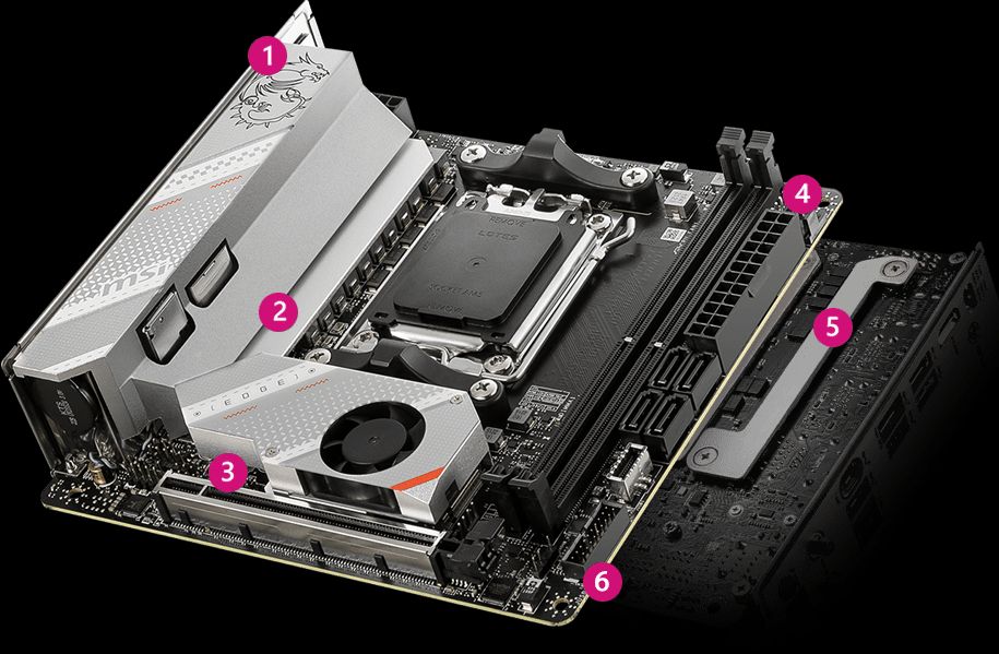 Розкрийте потенціал і насолоджуйтеся максимальною продуктивністю завдяки унікальній конструкції модуля стабілізатора напруги VRM, який використовує загалом 8+2+1 фаз живлення. У поєднанні з 80-амперною системою Smart Power Stage материнські плати серії MPG B650I EDGE WIFI готові до безперебійної роботи навіть з найсучаснішими моделями процесорів, сумісними з сокетом AM5.