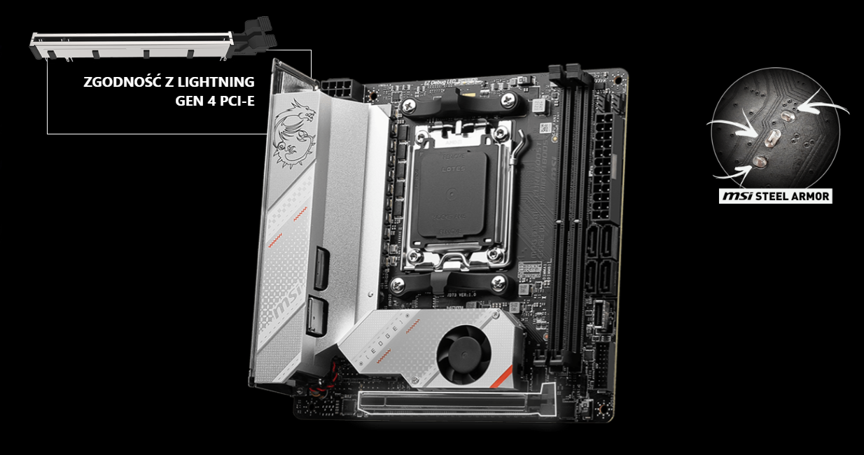 Сумісні з PCI-E роз'єми Lightning Gen 4 і система Steel Armor