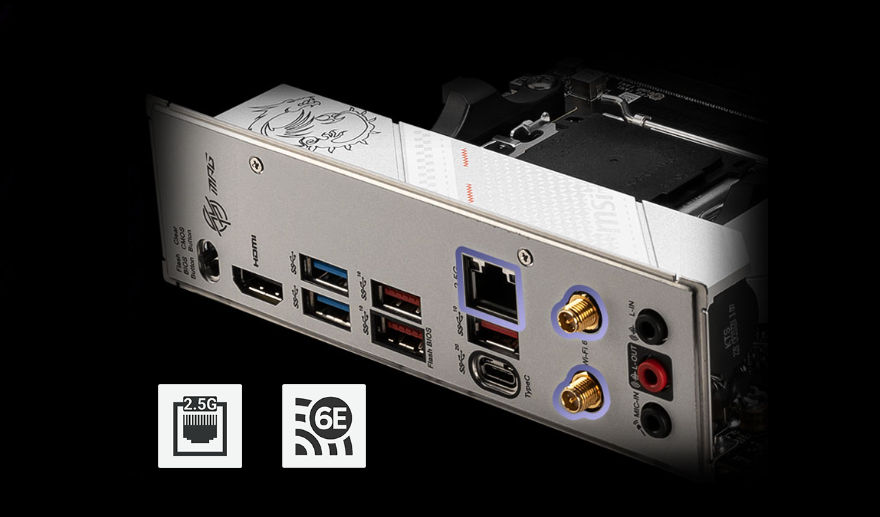 MPG B650I EDGE WIFI виділяється своєю незвичайною сріблясто-білою кольоровою гамою. Вона демонструє всьому світу унікальну індивідуальність, яка відрізняє цю плату від інших пристроїв. Крім того, що це стильна материнська плата, вона також є надійною основою для створення потужного комп'ютера. Серія MPG демонструє те, що є модним в апаратному забезпеченні, підкреслює незвичайний та унікальний дизайн і виражає бунтарське ставлення до викликів ігрового світу. Завдяки видатній продуктивності та стилю, серія MPG визначає майбутнє ігрової моди.