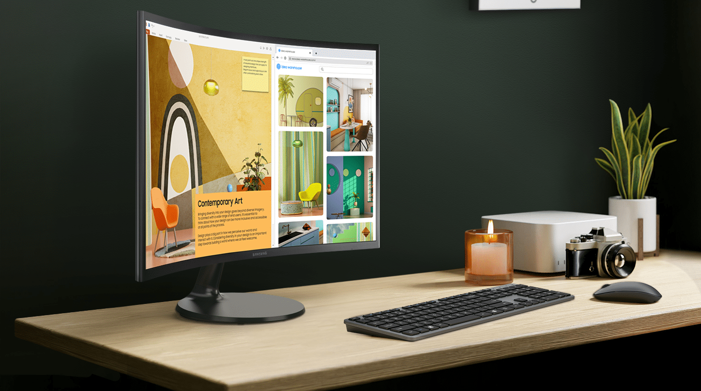 Насолоджуйтеся ще більш насиченим переглядом. Вигнутий монітор розширює поле зору, покращуючи сприйняття глибини та мінімізуючи периферійні відволікаючі фактори, щоб допомогти вам зосередитися на кожній деталі.