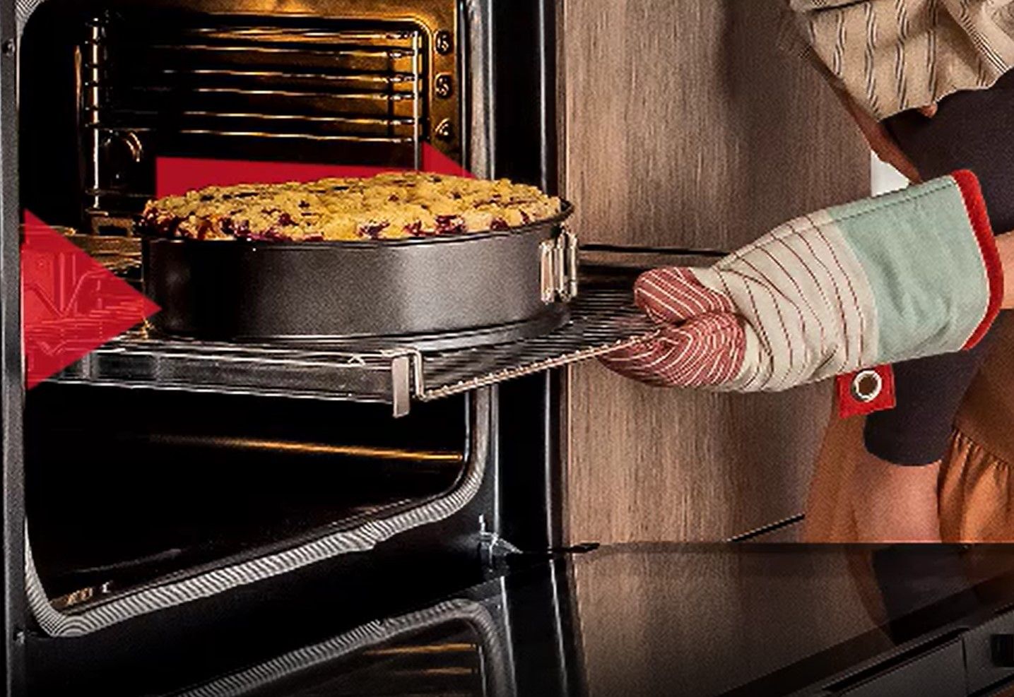 Тут класичні рішення поєднуються з функціональністю. Температура та функція приготування встановлюються за допомогою ергономічних ручок, а час випікання точно регулюється за допомогою сенсорного управління. Дисплей запам'ятає, коли настав час виймати страву з духовки, і навіть вимкне її, коли прийде час йти! І навіть подасть звуковий сигнал, щоб повідомити вам про це.