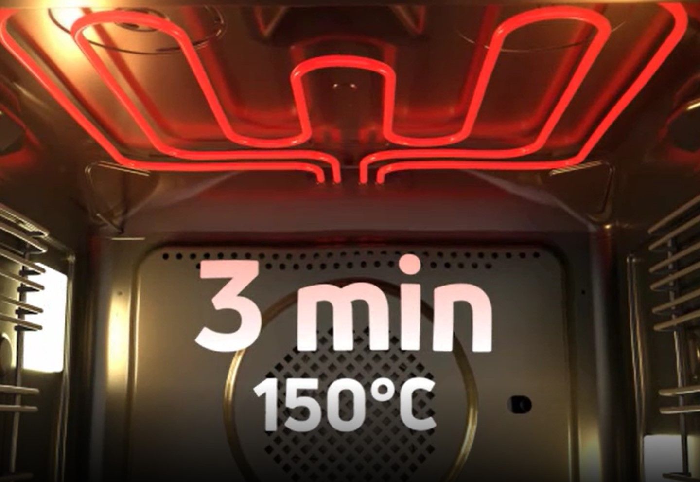 Ви завжди поспішаєте і не на все вистачає часу? Ця функція дозволяє духовці дуже швидко нагрітися до потрібної температури. Завдяки одночасному використанню гриля, кругового нагріву та вентилятора духова шафа досягає 150°C всього за 3 хвилини! Ви можете увімкнути її за мить до початку випікання і бути впевненими, що все встигнете вчасно!