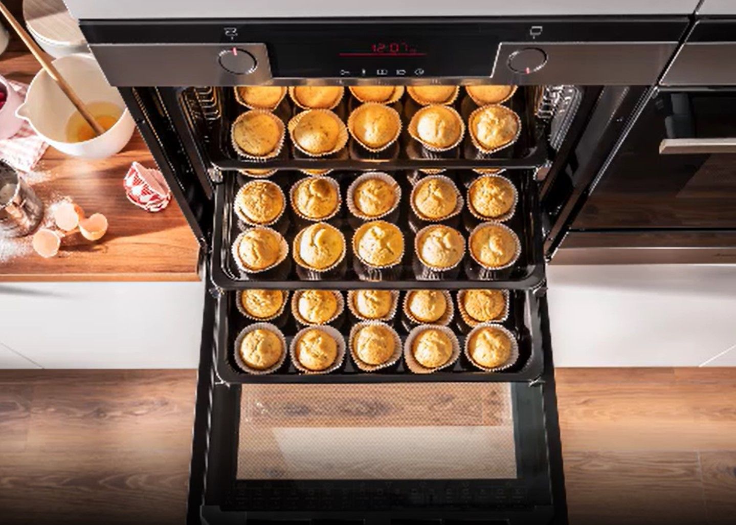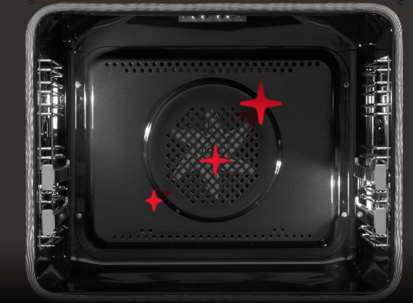 Новий дизайн внутрішньої камери духової шафи з більшим нагрівальним елементом, ніж у тостерів, забезпечує ідеальний, рівномірний розподіл тепла по всій робочій камері. Завдяки цьому ви можете приготувати велику партію випічки з упевненістю, що вона рівномірно пропечеться і підрум'яниться. У цій просторій духовій шафі легко поміститься понад 100 кексів! Ви також можете сушити гриби та фрукти відразу на декількох рівнях. А більша площа задньої кришки вентилятора з новим розташуванням вентиляційних отворів прискорить нагрівання, щоб ваша робота йшла ще більш гладко.