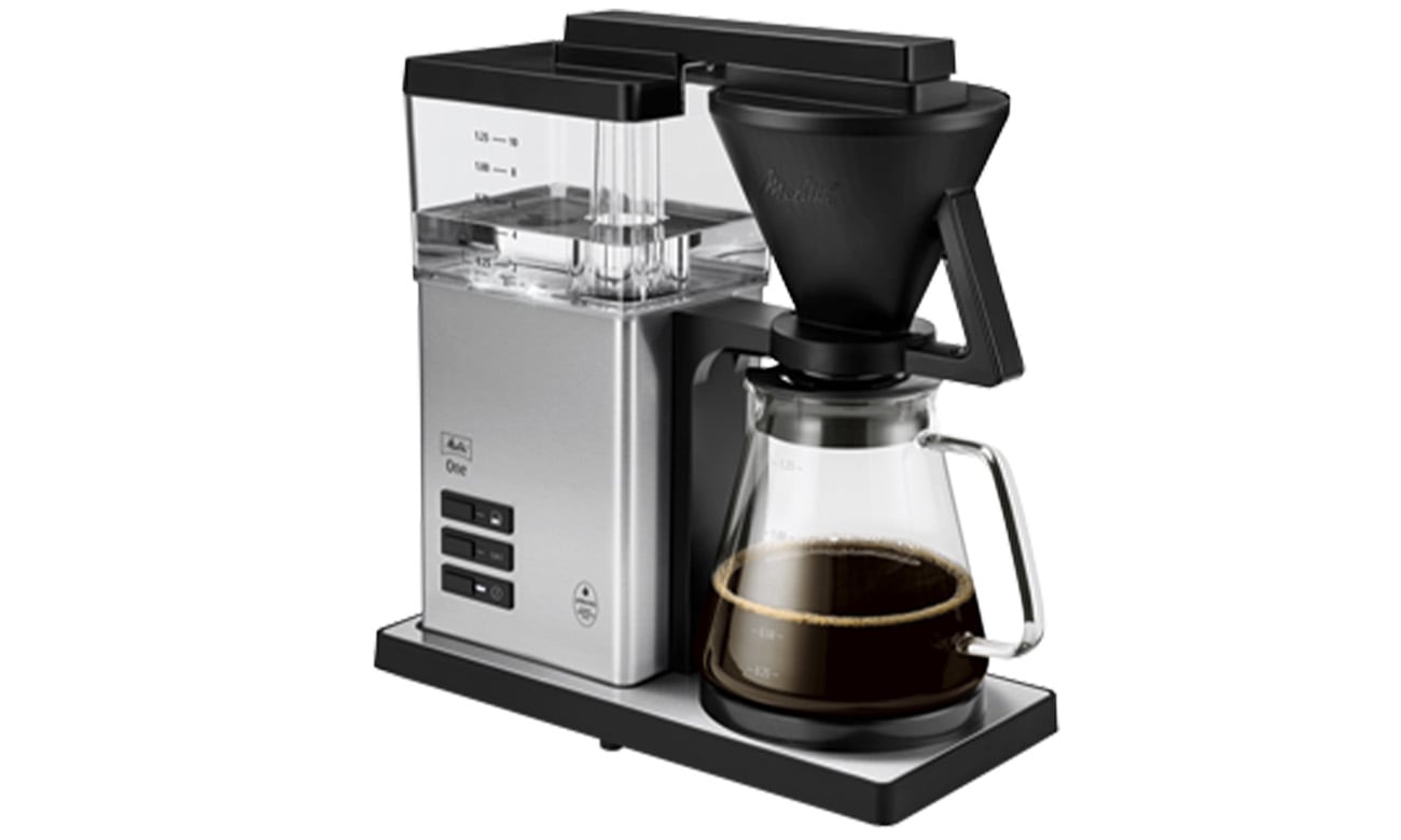 Melitta One - це кавоварка, яка поєднує в собі простоту та передові технології. Управління нею інтуїтивно зрозуміле і не вимагає від вас багато часу на вивчення численних функцій. Всі компоненти легко розбираються для простого очищення, а можливість миття в посудомийній машині є додатковим бонусом. Світлодіодне підсвічування контейнера для води, вбудована програма видалення накипу або знімний тримач фільтра з краплевловлювачем - це лише деякі з функцій, які полегшують щоденне використання кавомашини. Термоконтейнер призначений для використання однією рукою, що робить його ще більш зручним у використанні.